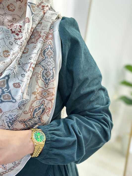 Sofia Ribbed Suede Abaya Dress - Petrol