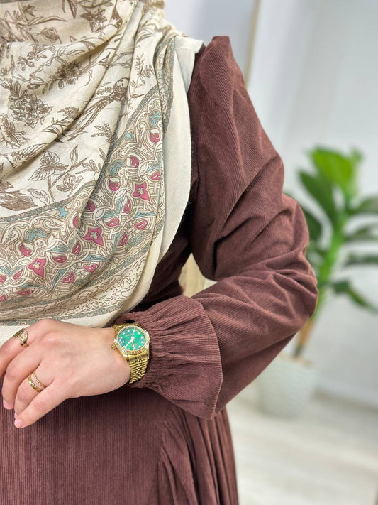 Sofia Ribbed Suede Abaya Dress - Dusty Olive