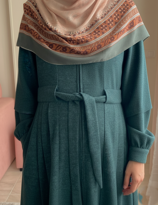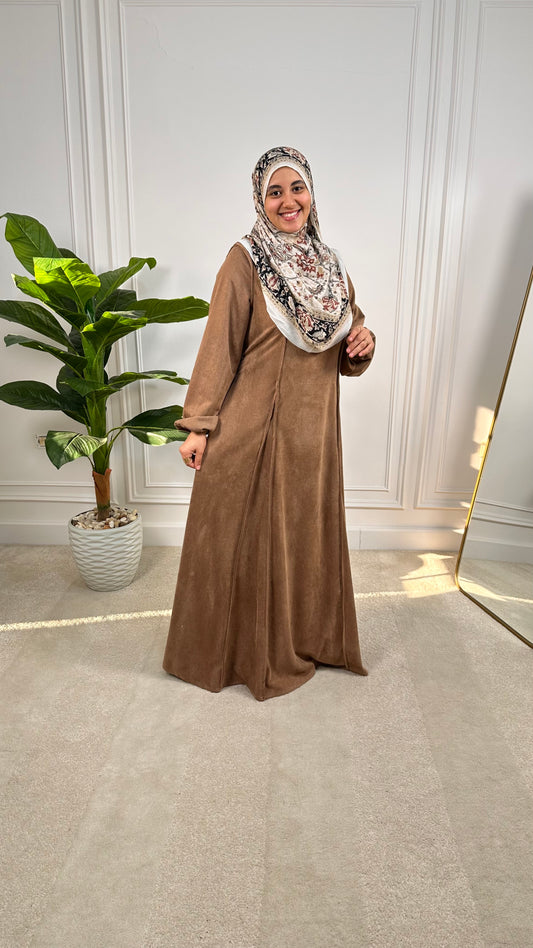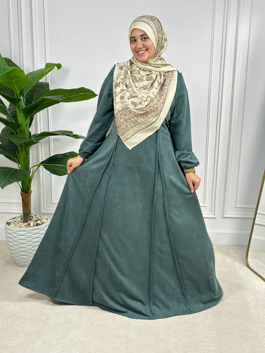 Kayan Ribbed Suede Empire Dress - Dusty Olive