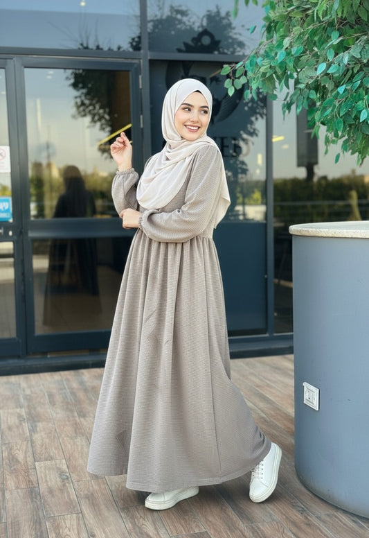 Zeina Buttons Dress - Beige