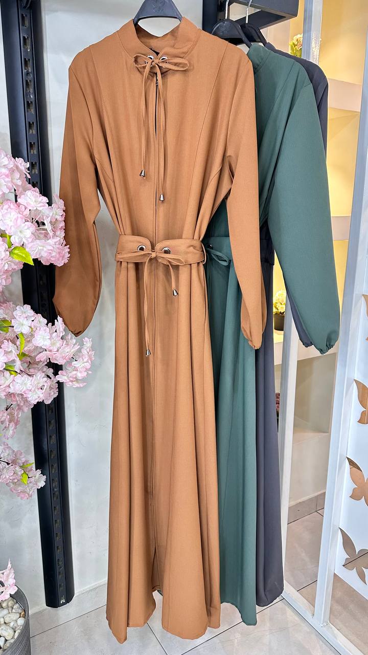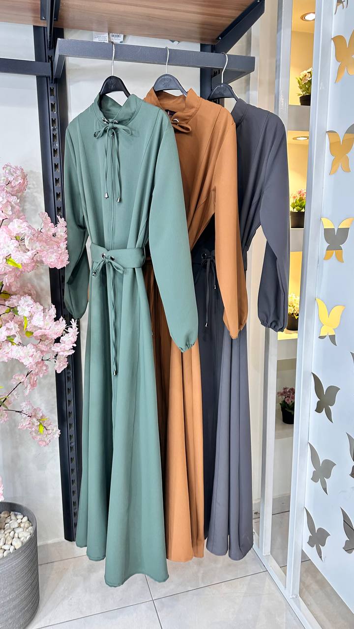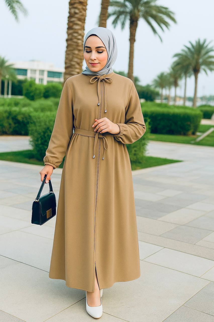 فستان عملي، بتصميم بسيط ومريح يناسب المحجبات. مثالي للمشاوير اليومية والخروجات الكاجوال والأنيقة.