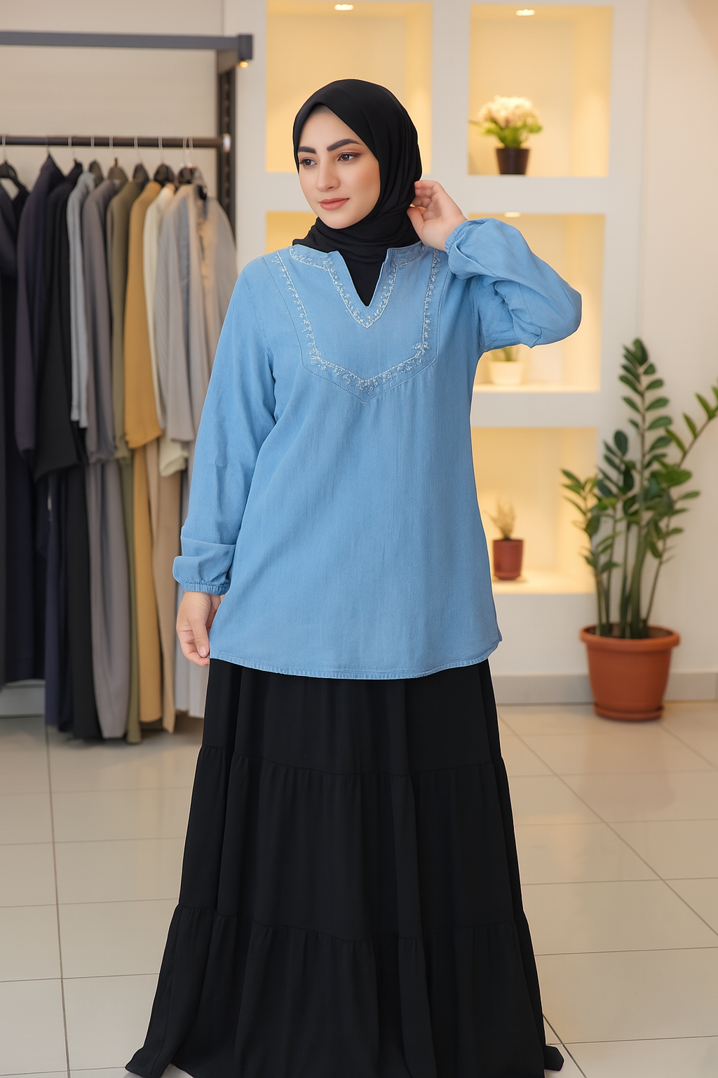 Denim Blouse Embroidered