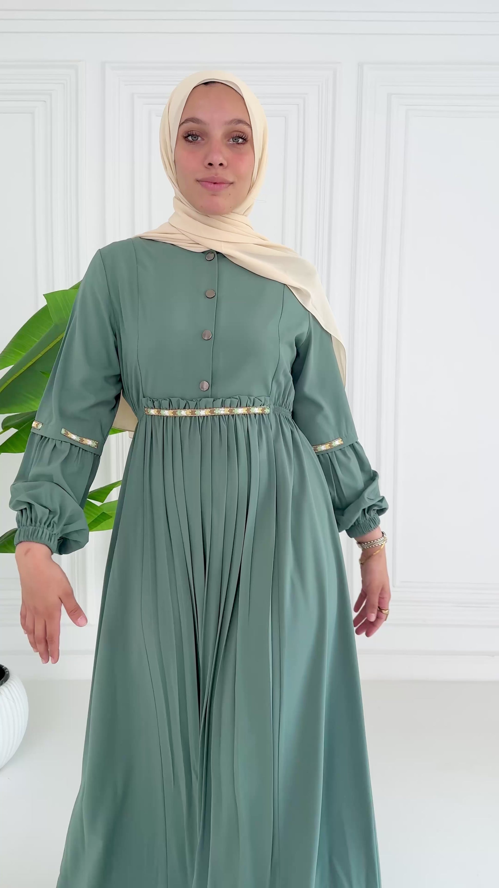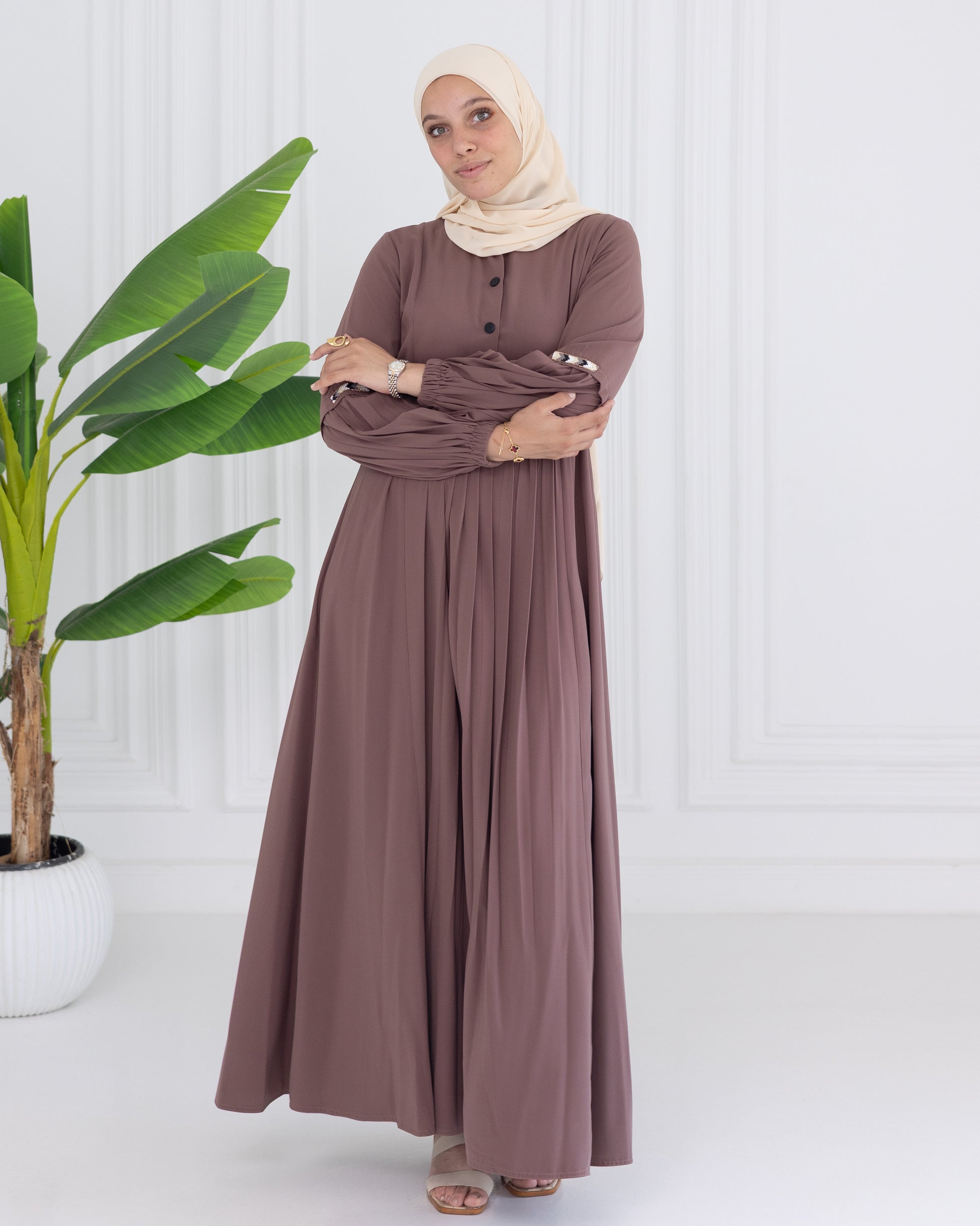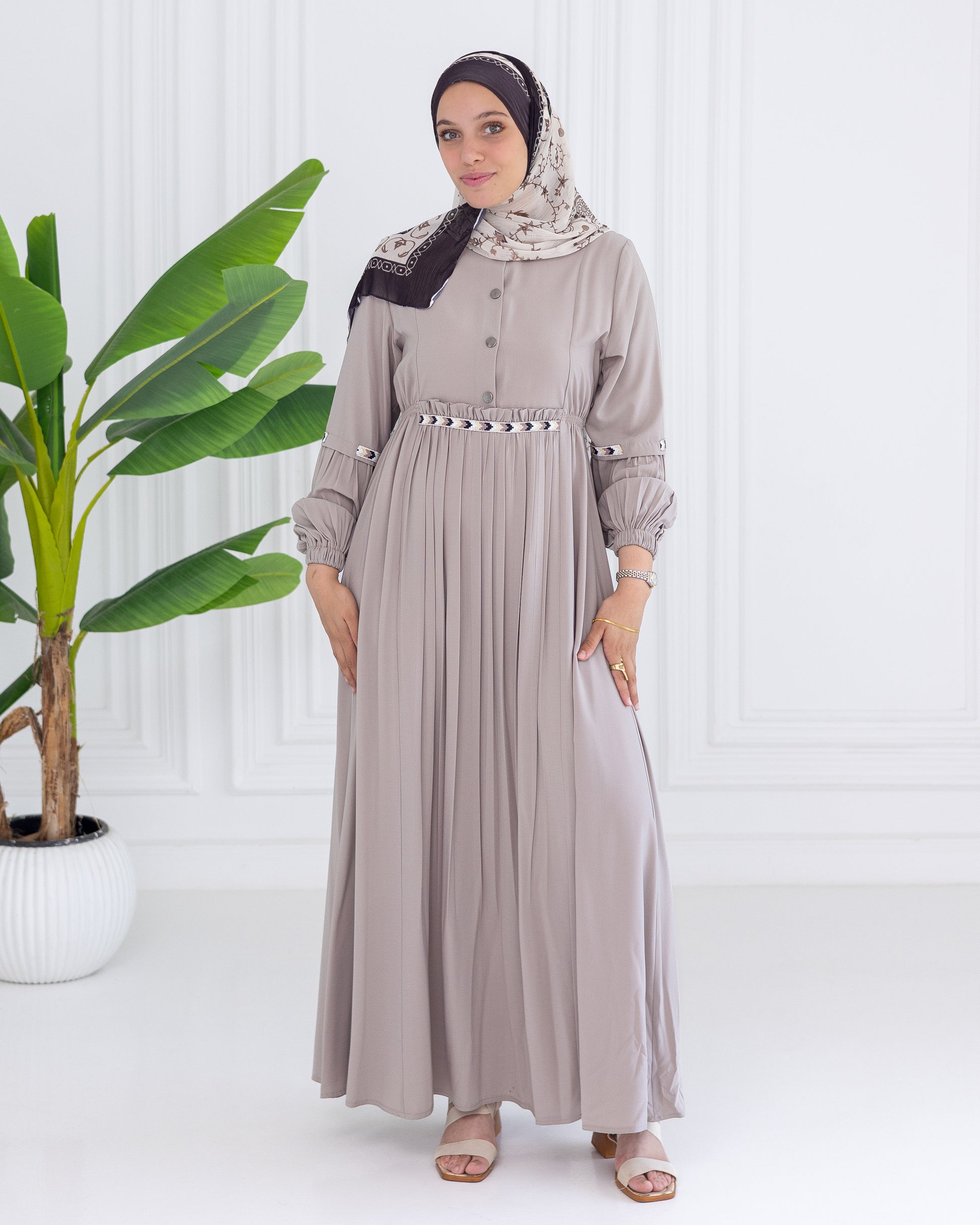 موديل أنيق بخامة كريب ناعمة تنسدل بانسيابية على الجسم وتمنحك إحساس بالراحة والرقي في نفس الوقت