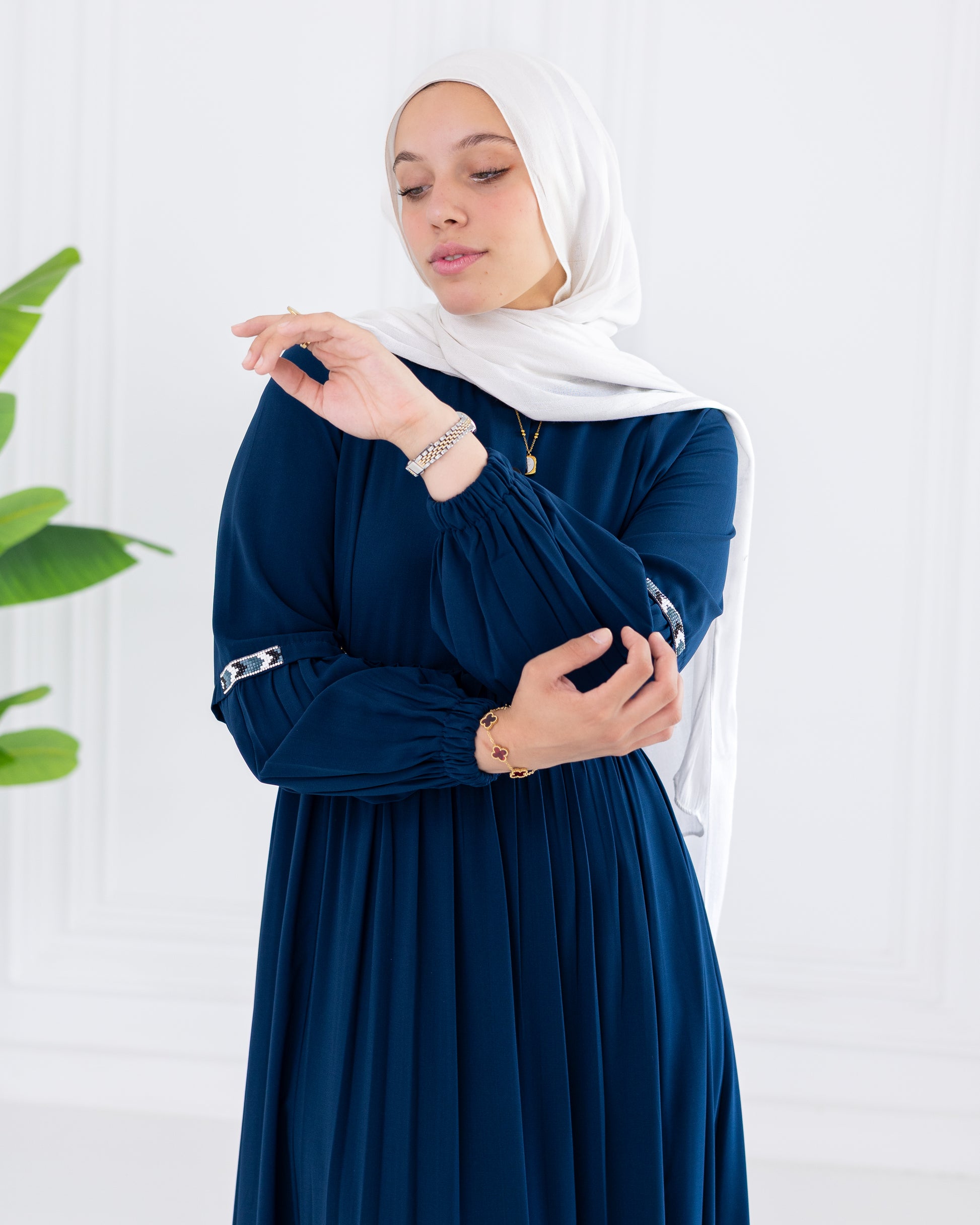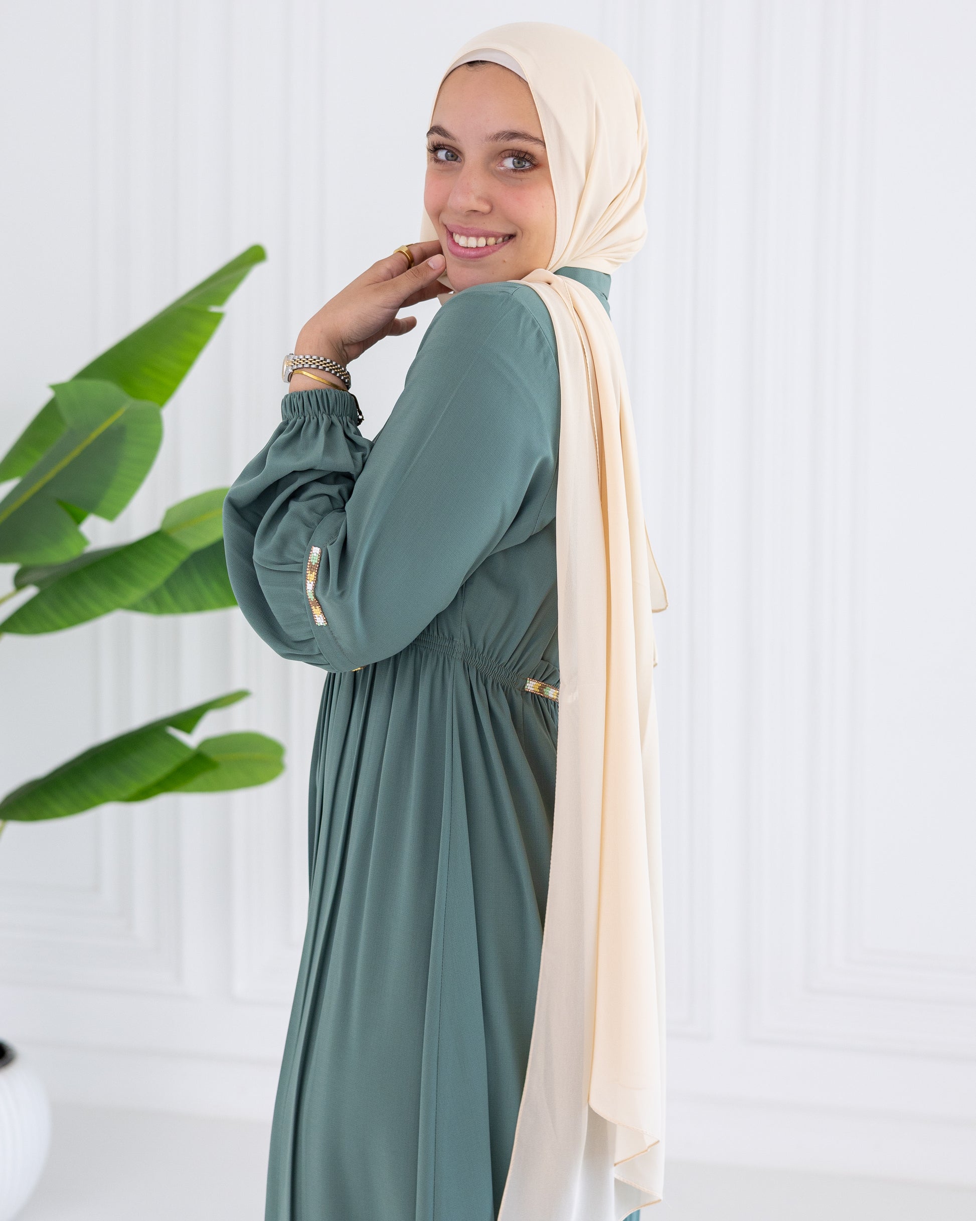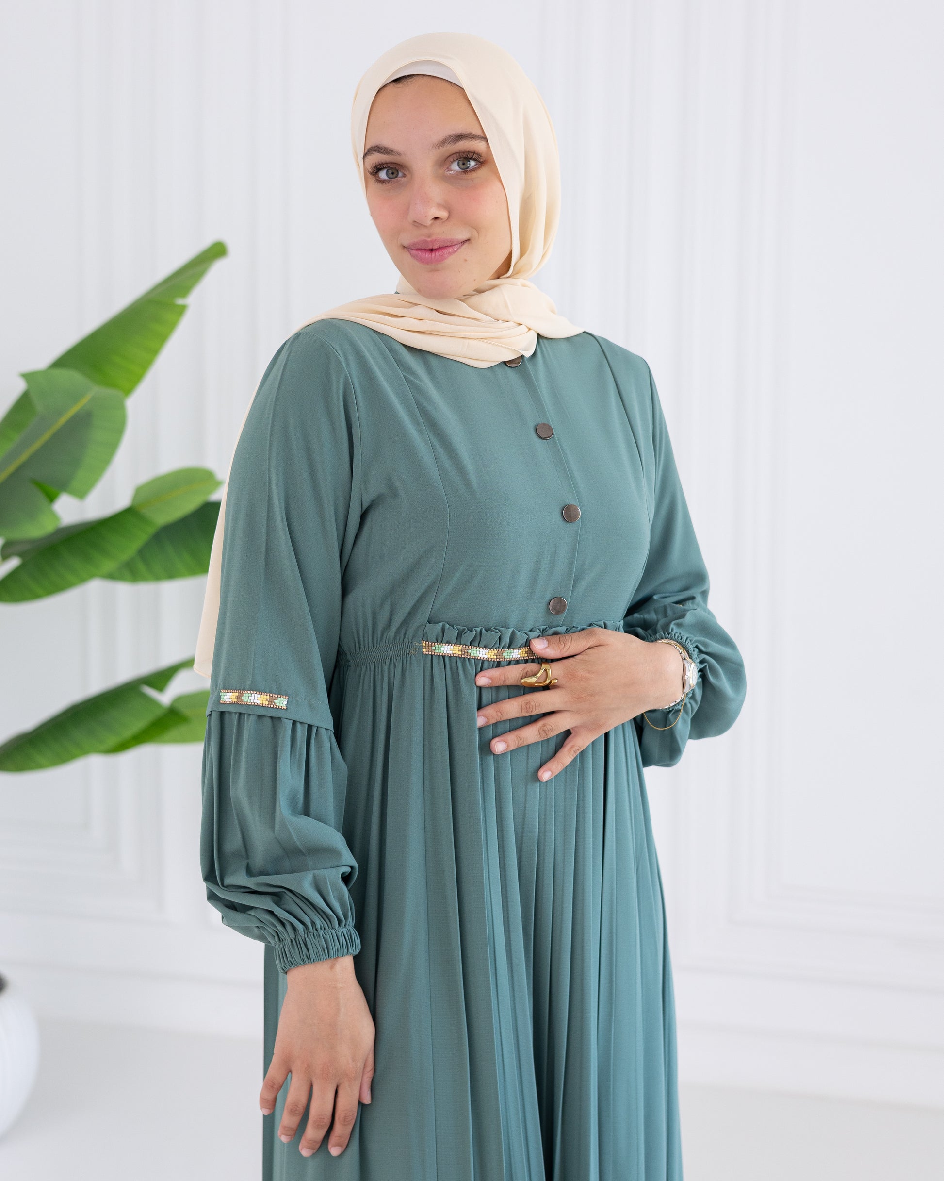 موديل أنيق بخامة كريب ناعمة تنسدل بانسيابية على الجسم وتمنحك إحساس بالراحة والرقي في نفس الوقت