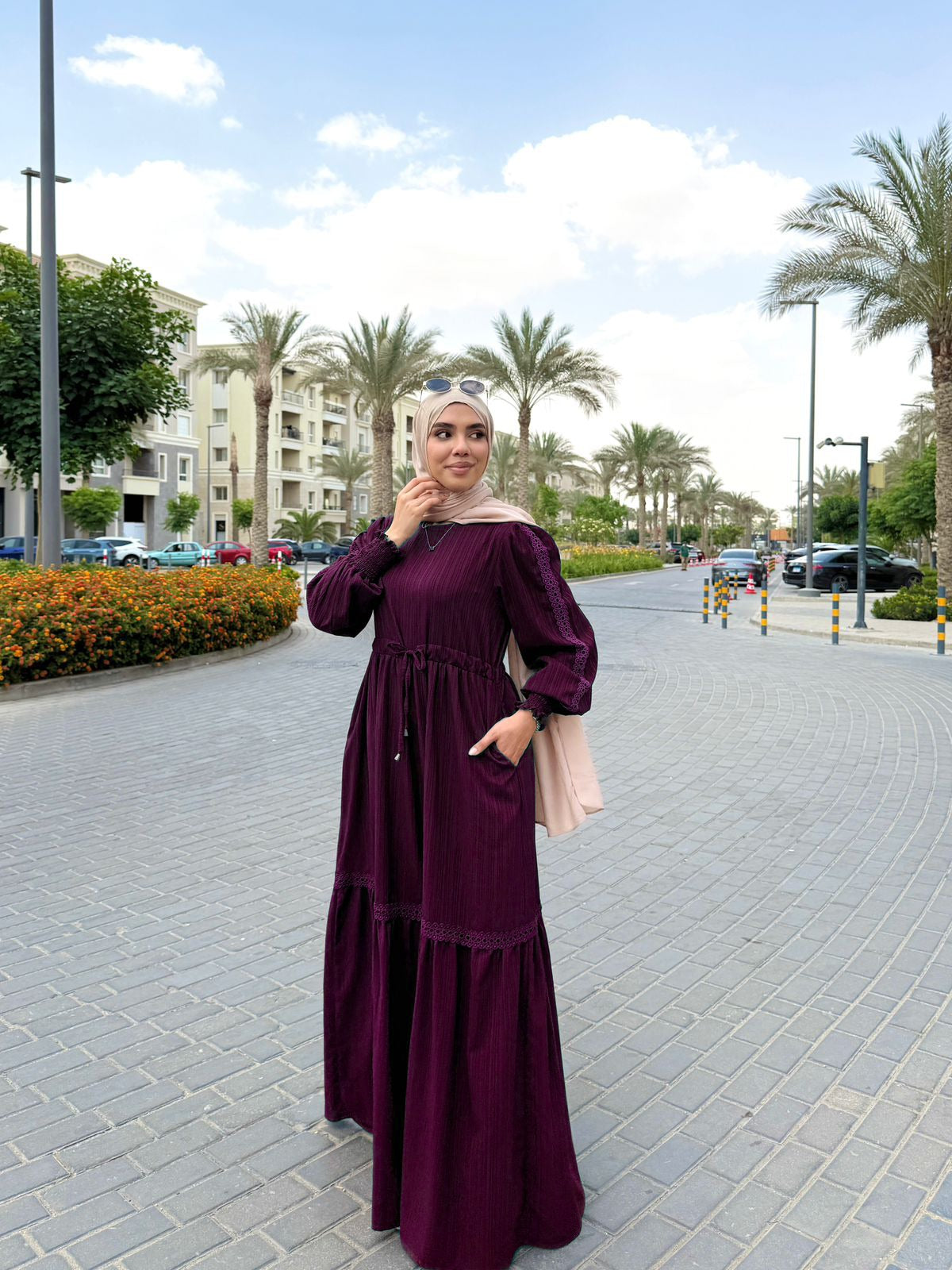 فستان طويل أنيق بتصميم محتشم يناسب المحجبات