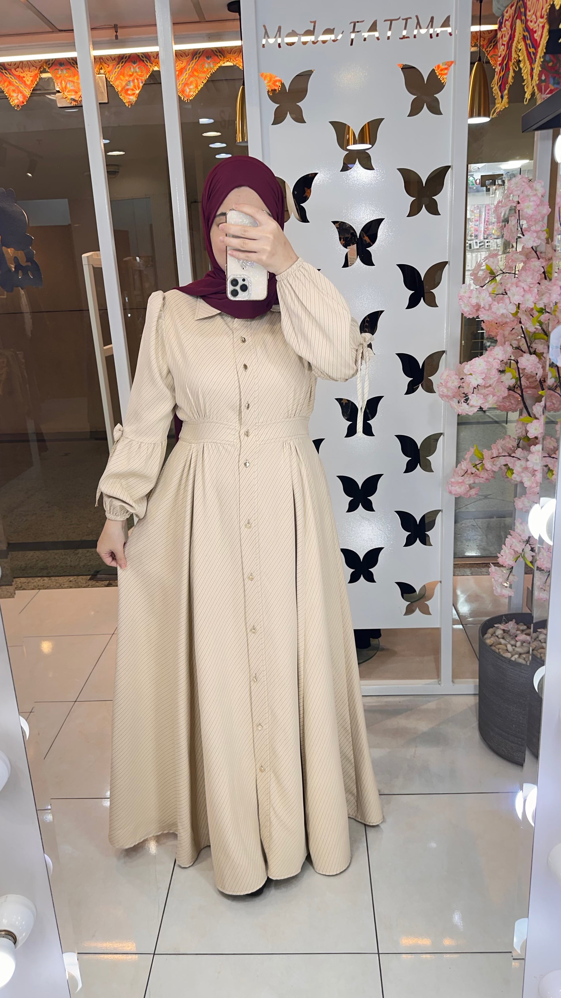 Ivy Rosaline Dress Beige Buttons With Tie 71083