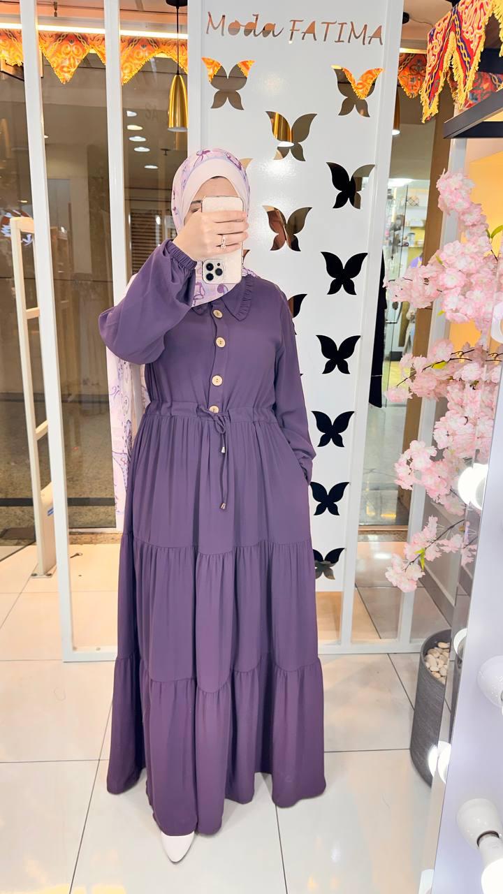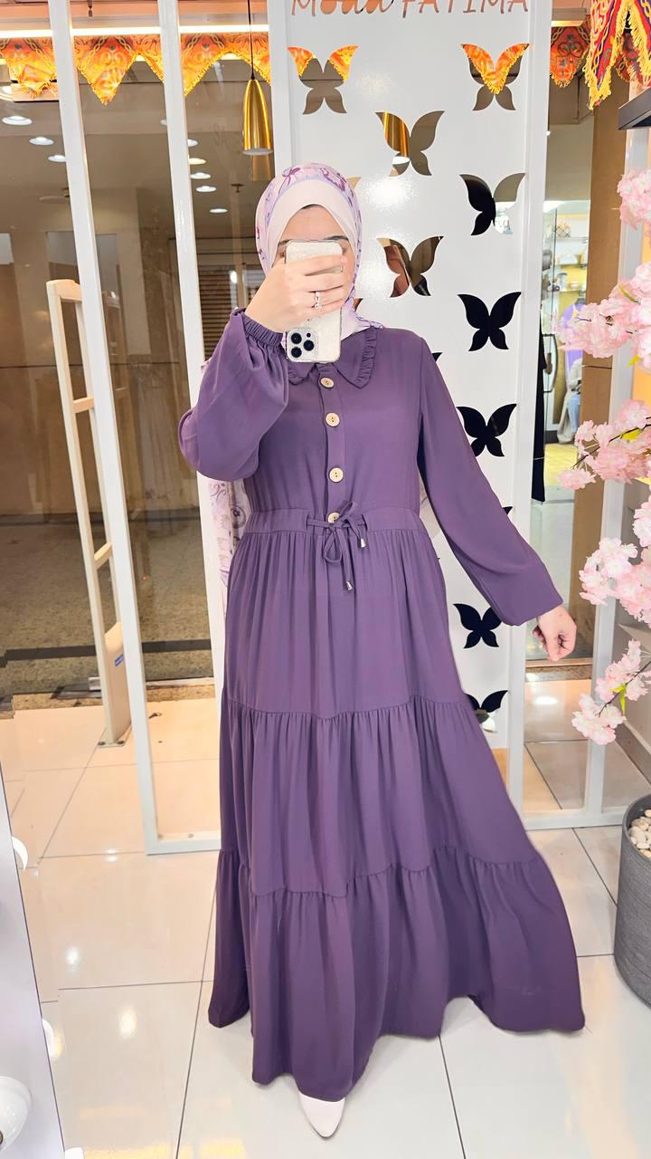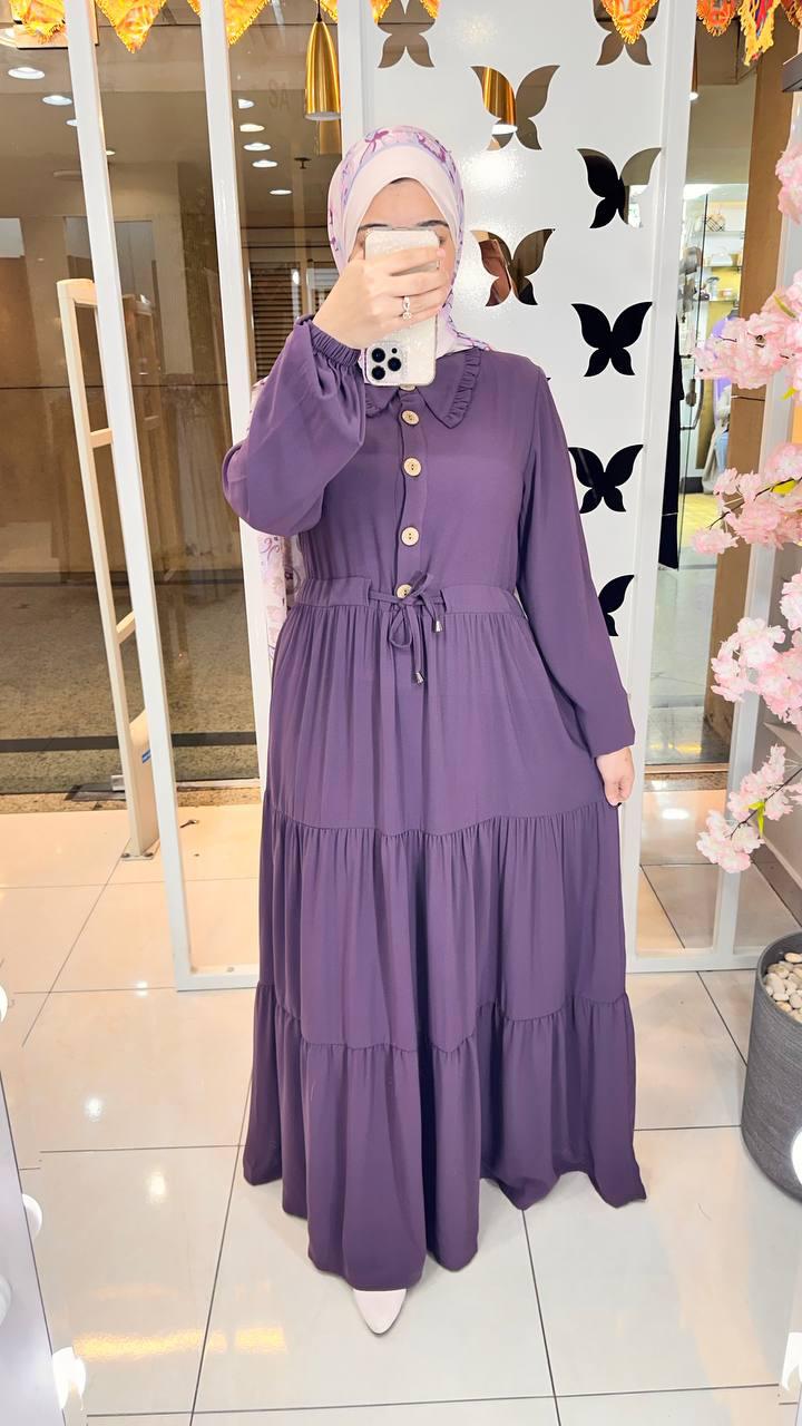 Oval Crepe Dress Purple With Waist Tie 61057