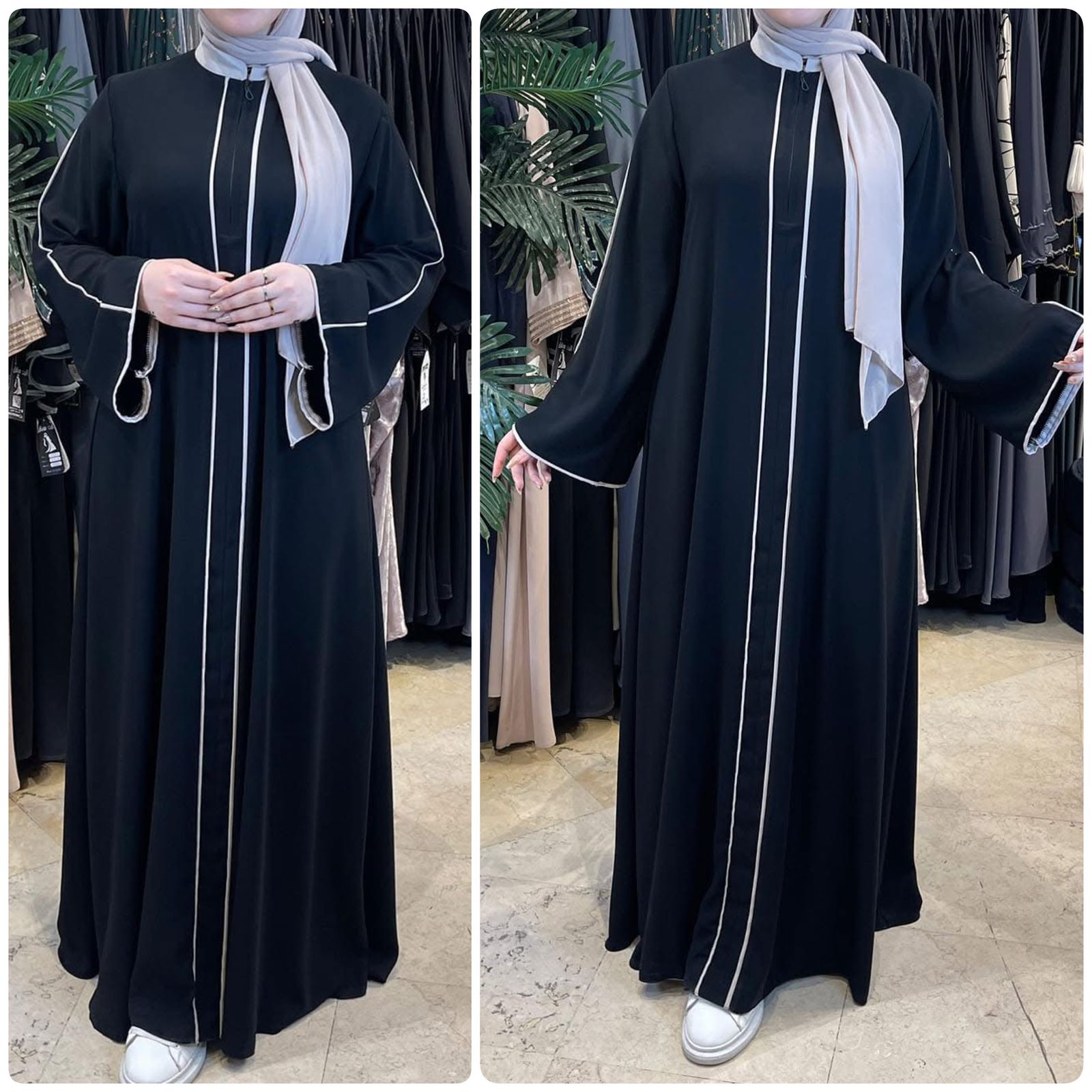 Regent Abaya Crepe Black with Beige Stripe 71063
